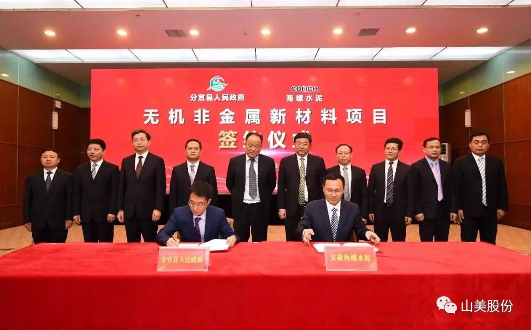 近日,安徽海螺水泥股份有限公司总投资20亿元的无机非金属新材料项目与江西省新余市分宜县正式签约,包括年产500万吨建筑骨料、100万吨机制砂及装配式新型建筑材料等项目。市委书记蒋斌,市委副书记、市长犹王莹等相关政府领导,与安徽海螺集团有限责任公司董事长高登榜等企业高管出席签约仪式。海螺分宜今年初已投产的一条年产100万吨机制砂生产线,国产主机设备全部选择山美股份,其余主机设备全部使用欧洲进口设备。